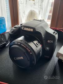 Vendo macchina fotografica Canon EOS 500D con un obiettivo Canon da 50mm perfetto per ritratti e anche foto con effetto bokeh.