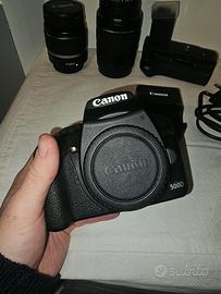 CANON EOS 500D tenuta in ottime condizioni, unico difetto solo estetico è il tappo in plastica di uscita per collegarla con il cavo, ma non cade se non viene applicata forza. funzionamento perfetto e sempre tenuta con la pellicola protettiva sullo schermo. vendo insieme a 2 ottiche Canon un 18-55 stabilizzato ed un tele da 55-200mm con entrambi già dotati anche di filtro CPL (polarizzatore), vendo con anche 1 batteria originale, tracolla originale, caricatore e cavi originali, e il supporto per doppia batteria mostrato in foto che consente di usarne 2 insieme invece che 1. Per qualsiasi info non disturbatevi a chiedermi altre foto o dubbi anche sul prezzo, che è leggermente trattabile. Sono anche disponibile a incontrarci per farla provare e vedere di persona.
