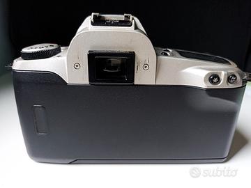 La Canon EOS 500N SLR è una fotocamera reflex da 35 mm a pellicola compatta prodotta in Giappone da Canon nel 1996. La fotocamera include flash integrato,esposizione automatica, 6 modalità di scatto, timer e regolazione diottrica, rendendola una scelta versatile per gli appassionati di fotografia analogica.