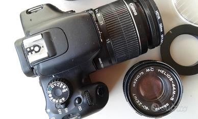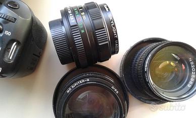 Canon EOS 550d con zoom 18/55 + 3 obiettivi russi non autofocus con innesto a vite e adattatore per Canon EOS. Gli obiettivi russi sono: Helios 58/1.8 Mir 37/2.8 Jupiter 9 85/2. Tutti con filtro di protezione e praticamente nuovi. 300 euro in blocco solo ritiro o valuto offerte. No perditempo grazie