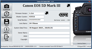 L'otturatore è stato attivato circa 43000 volte, ben al di sotto del numero garantito da Canon.
