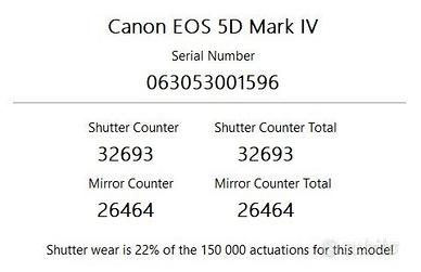 Otturatore: Meno di 36 mila scatti (certificati), ovvero meno del 25% della sua vita utile garantita.