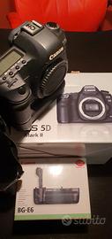 Vendo come da titolo refelx Canon eos 5D MK II tenuta solo come macchina di riserva, con pacco batteria originale canon , gli scatti come da foto, questo tipo di processore può raggiungere i 150.000 scatti ne ha 37mila meno della metà, accessori scatoli carica batteri con 2 batterie non perditempo.