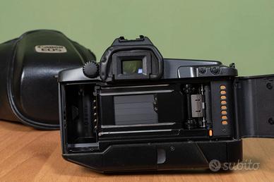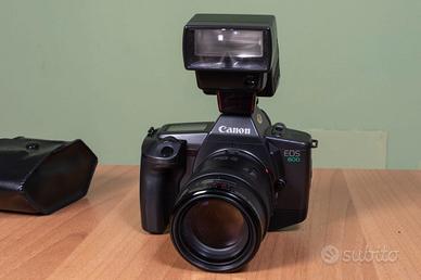 Macchina fotografica Canon EOS 600 analogica a pellicola, perfettamente funzionante e in ottime condizioni, completa di obiettivo zoom 35-105 e flash dedicato 300ex con custodia originale, tracolla Canon e filtro UV di protezione. Kit completo per chi vuole imparare e cimentarsi nella fotografia con pellicola ed avere tutto quello che serve. Ma anche per l'esperto che vuole fare foto di qualità e poi svilupparle e stamparle. Lo zoom è adatto sia a foto ritratti che per panorami e vacanze.