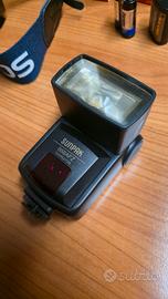 Accessoriata di flash Sunpak 888AFZ Thyristor, borsa da trasporto, 2 rullini e 2 batterie.