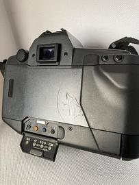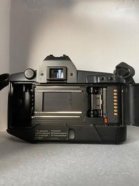 Fotocamera Canon EOS 600 reflex analogica 35mm. Discrete condizioni condizioni con segni d’uso, l’ottica del mirino è in buono stato, non c’è nebbia, non ci sono funghi. Tutte le funzioni come l’otturatore, l’esposimetro e la messa a fuoco automatica funzionano perfettamente; la fotocamera è stata testata con rullino, caricamento, avanzamento e riavvolgimento automatico funzionano, così come i led interno ed esterno. La fotocamera è dotata di tracolla Canon. In OMAGGIO obiettivo Canon 35-70mm f/3.5-4.5 con le lenti opache.