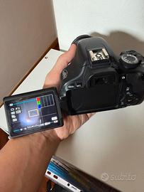 Vendo per passaggio a sistema superiore Canon EOS 600D completa di obiettivo kit 18-55mm. La macchina è in condizioni perfette, usata con estrema cura e perfettamente funzionante in ogni sua parte. Lo schermo orientabile non presenta graffi e il sensore è pulito.