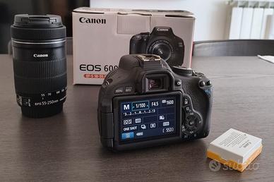 Vendo Canon EOS 600D in perfette condizioni con obbiettivo 18-55mm e 55-250mm, entrambi originali Canon. Seconda batteria anch'essa originale. Completa di scatola ed istruzioni. Non spedisco. Prezzo non trattabile.