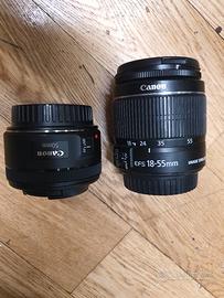 A corredo Canon EF-S 18-55 IS, Canon EF 50mm e Canon EF 75-300mm. Tutto tenuto maniacalmente