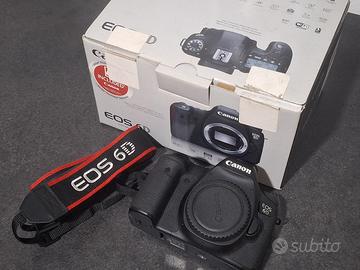 CANON EOS 6 D full frame perfettamente funzionante, acquistata 3 anni fa direttamente da servizio sostituzione Canon Europa. Pochissimo utilizzo. Vendo con 3 batterie, 2 caricatori singoli standard e 1 caricatore doppio leggero. Include scatola originale, manuali, 4 cd installazione, tracolla 6D, cavo collegamento pc e cavo collegamento TV.