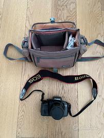 CANON EOS 700 con Power zoom EF 35-80mm 1:4-5.6 fotocamera reflex a pellicola 35mm, funzioni program e scene, autoscatto, flash incorporato, slitta porta flash per un altro flash, nel mirino controllo con led verde, traino e riavvolgimento automatico, usata poco tutta perfetta senza colpi o graffi, includa borsa da viaggio.