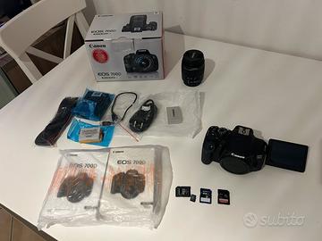 Vendo bellissima reflex con obiettivo ef-s 18/55 III kit + 2 batterie (una originale Canon e una Duracell equivalente all' originale), 2 sd card, una da 16 gb e una da 2gb, 1 micro sd card da 32 gb con adattatore, come da foto. Per appassionati che vogliono entrare nel mondo della fotografia. Circa 8000 scatti. Perfettamente funzionante e senza segni di usura. Perfetta come nuova.