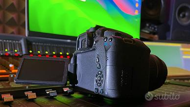 Vendo CANON eos 700D kit fotocamera Reflex con obiettivo 18-55, in perfetto stato estetico/funzionale. Completa di imballo originale, n. due batterie (originale + compatibile Duracell con caricabatteria), 4 manuali (compreso lingua italiana), n. 2 cd rom con software Canon, cavo connessione con computer, tracolla originale e tappo Canon. Usata solo in studio.