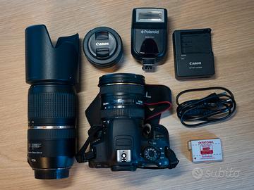 Vendo per passaggio a modello superiore kit composto da: - Canon EOS 700D - Obiettivo grandangolare Sigma 10-20mm f/4-5.6 EX DC HSM perfetto per fotografia paesaggistica - Teleobiettivo Tamron 70-300 f/4-5.6 Di VC - Obiettivo Canon EF 50mm f/1.8 stm per sfocati spettacolari - Tracolla originale - Batteria originare + caricabatterie originale - Batteria aggiuntiva - Flash a slitta Kit perfetto per iniziare a fotografare e completo includendo tutte le lunghezze focali Normali segni di usura ma funzionamento perfetto.