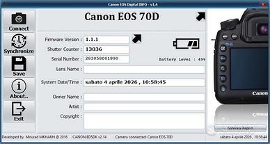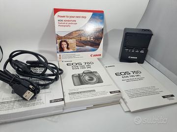 Canon EOS 70D in eccellenti condizioni, perfettamente funzionante e pronta all’uso. 🔹 Solo 13.000 scatti (pochissimi!) 🔹 Sensore pulito, sempre usata con cura 🔹 Nessun difetto, mai caduta 📦 Incluso nel kit: ✔️ Corpo Canon EOS 70D ✔️ Obiettivo Canon EF 50mm f/1.8 STM (nitidissimo, perfetto per ritratti) ✔️ Paraluce originale Canon ES-68 ✔️ Batteria + caricabatterie ✔️ Cavo USB originale ✔️ Scheda SD 64GB (pronta per scattare subito) ✔️ Tracolla Canon ✔️ Borsa fotografica (stile vintage, molto bella e comoda) ✔️ Scatole originali + manuali 📷 Perché è un ottimo acquisto: • Autofocus rapido e preciso (Dual Pixel) • Display orientabile touch • Ottima sia per foto che video • Il 50mm f/1.8 è ideale per ritratti con sfondo sfocato (effetto professionale)