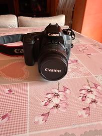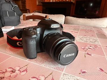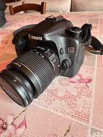 📸 Scheda tecnica – Canon EOS 70D Sensore e qualità immagine •Sensore: APS-C CMOS da 20,2 megapixel •Processore: DIGIC 5+ •Risoluzione max: 5472 × 3648 •Gamma ISO: 100–12800 (espandibile a 25600) Autofocus •Sistema AF: Dual Pixel CMOS AF (molto avanzato per foto e video) •Punti AF: 19 punti tutti a croce •Ottimo tracking dei soggetti in movimento 📸 Scatto •Raffica: 7 fps (fotogrammi al secondo) •Otturatore: 30s – 1/8000s •Modalità: manuale, priorità tempi/diaframma, automatica, scena 🎥 Video •Full HD: 1920×1080 •Frame rate: fino a 30 fps •Autofocus continuo fluido (Dual Pixel) Display e mirino •Schermo: 3” touchscreen orientabile •Risoluzione: ~1.04 milioni di punti •Mirino ottico: copertura ~98% Connettività •Wi-Fi integrato •Uscita HDMI •Ingresso microfono Batteria •Tipo: LP-E6 •Autonomia: circa 920 scatti Obiettivi •Obiettivo Canon standard 18-55mm •Obiettivo Canon compatto aggiuntivo 50mm Controllo remoto •Telecomando Canon (RC-6 con scatola Memoria •Scheda SD: SanDisk Ultra 128 GB (UHS-I) Alimentazione •Caricabatterie Canon •Cavo di alimentazione Trasporto •Borsa fotografica imbottita Accessori vari •Tappi per obiettivi e corpo macchina •Custodia per telecomando •Tracolla originale “EOS 70D”