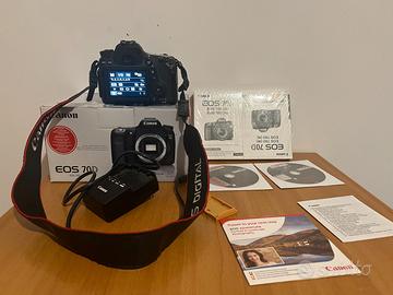 Vendo per realizzo immediato una Canon EOS 70D versione Wi-Fi con 35953 scatti completamente funzionante con pochi segni di normale usura, usata come seconda macchina, con tracolla Canon, batteria originale e corrispettivo carica batteria, con tutti i manuali e CD originali mai aperti con scatola originale.