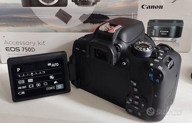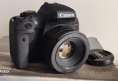 Vendo Canon EOS 750D 24.2Mpx con ottica Canon 50mm/1.8, usata poco e nulla perfetta pari al nuovo. Con batteria e carica batteria, tracolla Canon e confezione originale.