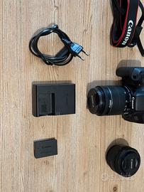 Vendo DSLR Canon EOS 750D, abbinata a: -Obiettivo Canon EF 18-55mm f 5-5.6 Stabilizzato -Obiettivo Canon EF 50mm f 1.8 Stabilizzato -Caricabatterie originale Canon -Batteria originale Canon -Cinghia originale Canon -Zaino Amazon Foto per trasportare il tutto. Condizioni ottime