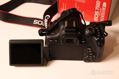La Canon EOS 750D è una reflex APS-C da 24,2 MP (sensore CMOS 22,3 x 14,9 mm) con processore DIGIC 6, ideale per appassionati. Offre ISO 100-12800, raffica a 5 fps, video Full HD 1080p, sistema AF a 19 punti a croce, schermo touch orientabile da 3" e connettività Wi-Fi/NFC integrata
