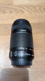 Canon EOS 760D + Canon EF-S 18-55mm + Canon EF-S 55-250mm Vendo Canon EOS 760D in ottime condizioni causa cambio macchina. La macchina è stata revisionata 2 anni fa ed è perfettamente funzionante. Inclusi: - obiettivo Canon EF-S 18-55mm - caricabatteria, batteria, cavo di alimentazione - scheda SD SanDisk Ultra SDXC I, 64gb, 40mb/s - custodia - teleobiettivo compatto Canon EF-S 55-250mm con stabilizzatore d'immagine e tecnologia STM (discrete condizioni e perfettamente funzionante, presenta qualche segno di usura) Canon EOS 760D è una fotocamera reflex digitale compatta. Monta un sensore CMOS APS-C da 24,2 megapixel di risoluzione con sistema di pulizia integrato e dispone di processore di immagine DIGIC 6, sistema autofocus a 19 punti a croce, display LCD Clear View II TFT da 3 pollici con una risoluzione di 1.040.000 punti, possibilità di registrare filmati video Full HD, una porta HDMI e il supporto al formato RAW. Touch screen orientabile. Mirino ottico. Connessione Wi-Fi e NFC. Opzione di scatto in remoto (con dispositivo portatile). La fotocamera è compatibile con tutti gli obiettivi EF e EF-S. Peso: 565 g Dimensioni: 132 x 101 x 78 mm PREZZO NON TRATTABILE SOLO CONSEGNA A MANO