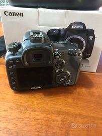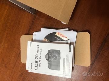 Macchina fotografica Canon EOS 7d mark II completa di scatola carica batteria, cinghia , batteria, la macchina è stata usata veramente poco non ha fatto 5000 fotografie. Regalo la borsa che vedete in fotografia.