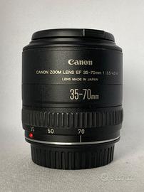 Fotocamera Canon EOS 850 reflex automatica analogica 35mm. Le condizioni sono pari al nuovo, l’ottica del mirino è in ottimo stato, non c’è nebbia, non ci sono funghi. Tutte le funzioni come l’otturatore, l’esposimetro e la messa a fuoco automatica funzionano perfettamente; la fotocamera è stata testata con rullino e caricamento, avanzamento e riavvolgimento automatico funzionano perfettamente. Ideale per i neofiti, la fotocamera è associata ad uno zoom luminoso Canon EF 35-70mm f/3.5-4.5 A funzionante in autofocus, si adatta quindi perfettamente alla fotocamera. L’obiettivo, dotato della sua scatola, è in ottime condizioni e funzionante, diaframma pulito senza nebbia, graffi o funghi sulle lenti. Presente nell’offerta una tracolla Canon. Disponibile all’invio di altre immagini. La fotocamera è l’obiettivo possono essere VENDUTI SEPARATI al prezzo di 40 € e 65 € rispettivamente.