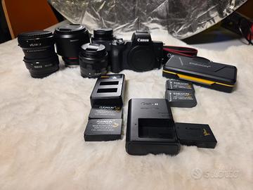 Canon EOS M50 + Kit completo Vendo Canon EOS M50 in ottime condizioni ( unico difetto nella pelle dell'impugnatura per frizione) per passaggio a modello successivo ,con tutti gli accessori utili per chi vuole iniziare o espandere il proprio corredo mirrorless APS-C Canon. Inclusi: • Corpo Canon EOS M50 • Obiettivo Canon EF-M 15-45mm • Obiettivo Meike EF-S 85mm f/1.8 STM • Obiettivo Samyang 50mm f/1.2 UMC CS M • adattatori EF/EF-S a EF-M (Meike e Viltrox) • 2 caricabatterie aggiuntivi (più quello in confezione) • 4 batterie LP-E12 aggiuntive (più quella in confezione) Prezzo richiesto: €1.150 trattabili Custodia di protezione inclusa