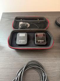 Completa di microfoni Wireless, telecomandino Canon per controllo della fotografica a distanza.