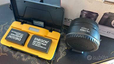 Canon EOS M50 in ottime condizioni, completa di scatola originale e ricco kit di accessori. Incluso nella vendita: •Corpo Canon EOS M50 •Obiettivo Canon EF-M 18-55mm f/3.5-5.6 IS STM •Adattatore Viltrox EF-EOS M (compatibile con tutti gli obiettivi Canon EF/EF-S) •2 batterie LP-E12 compatibili ENEGON (1200mAh) •Caricabatterie doppio ENEGON con display •Scatola originale Canon Caratteristiche principali: •Sensore APS-C 24 MP •Video Full HD 60fps •Schermo orientabile touch •Wi-Fi e Bluetooth integrati •Autofocus Dual Pixel veloce e preciso Vendo per passaggio a sistema full frame. Fotocamera perfettamente funzionante, nessun graffio o difetto. 💰 Prezzo: €400 📍 Udine – ritiro a mano preferito, spedizione possibile con spese a carico dell’acquirente.