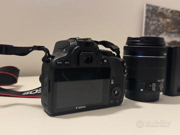 Canon EOS100D con obbiettivo originale 18-55 mm e caricatore. Ottime condizione, articolo usato raramente e senza segni di usura. Schermo touch e scheda SD