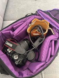 Vendo Canon eos2000D con 2 obbiettivi ( Macro 58 mm e macro 0,25/0,8ft), carica batteria, memoria e zainetto