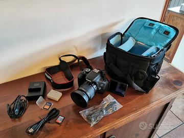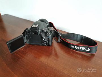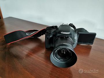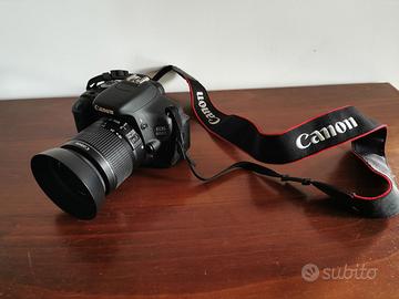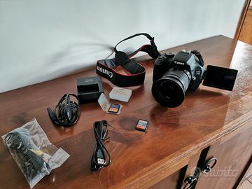 Canon EOS600D praticamente come nuova usata una volta, obiettivo canon 18/55, cavi e carica batteria originali, 2 simcard da 1gb ciascuna, borsa trasporto come nuova, cavalletto regolabile in ottime condizioni.