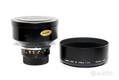 L’OBIETTIVO CANON EX 125mm F.3,5, E’ UN TELEOBIETTIVO DEDICATO AL SISTEMA CANON EX, CHE COMPRENDE DUE FOTOCAMERE REFLEX: LA CANON EX EE e LA CANON EX AUTO. GLI ALTRI OBIETTIVI DEL SISTEMA SONO IL 50mm 1.8, IL 35mm 3.5 E IL 95mm 3.5. QUESTI OBIETTIVI NON HANNO IL DIAFRAMMA, CHE E', DIVERSAMENTE DALLE ALTRE REFLEX, INSTALLATO NEL CORPO DELLA FOTOCAMERA. L'OBIETTIVO SI INNESTA CON APPOSITO ATTACCO A VITE.