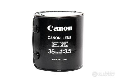 L’OBIETTIVO CANON EX 35mm F.3,5, E’ UN GRANDANGOLO DEDICATO AL SISTEMA CANON EX, CHE COMPRENDE DUE FOTOCAMERE REFLEX: LA CANON EX EE e LA CANON EX AUTO. GLI ALTRI OBIETTIVI DEL SISTEMA SONO IL 50mm 1.8, IL 95mm 3.5 E IL 125mm 3.5. QUESTI OBIETTIVI NON HANNO IL DIAFRAMMA, CHE E', DIVERSAMENTE DALLE ALTRE REFLEX, INSTALLATO NEL CORPO DELLA FOTOCAMERA. L'OBIETTIVO SI INNESTA CON APPOSITO ATTACCO A VITE.