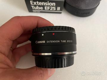 Tubo di prolunga originale Canon per obiettivi EF, ideale per fotografia macro. Aumenta l’ingrandimento mantenendo autofocus ed esposizione automatica. Pari al nuovo.