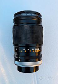 Teleobiettivo a messa a fuoco manuale per le fotocamere con attacco Canon FD (pellicola). La sigla "S.C." indica la versione con il trattamento antiriflesso "Spectra Coating", che è un modello precedente alla serie New FD. Perfetto stato.