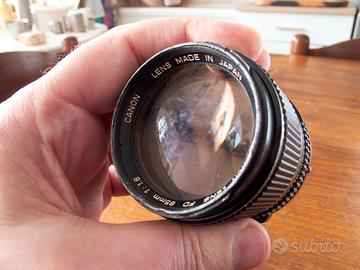 Obiettivo Canon FD 85mm f/1.8, la versione più recente. Lenti in buone condizioni con tracce evidenti di pulizia sulla lente frontale: onestamente non ho rilevato conseguenze sulle immagini, che sono nitidissime (persino troppo, per un'ottica da ritratto qual è), ma certamente non si presenta bene. L'obiettivo è esteticamente vissuto: soprattutto, la filettatura anteriore per il montaggio dei filtri è parzialmente danneggiata (i filtri si montano, ma con un po' di fatica) da cui il prezzo. Ideale per chi vuole provare una famosa ottica vintage senza spendere una cifra elevata.