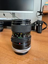Vendo Canon FD Macro 50mm f/3.5 + Canon Extension Tube per inutilizzo. L’obiettivo è in ottime condizioni, non presenta difetti se non l’usura del tempo. Disponibile anche per consegna a mano. Per qualsiasi dubbio o informazione contattatemi.