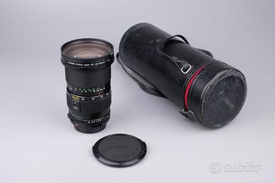 Obiettivo zoom Canon Fd 35-105 Macro f.3.5 in buone condizioni. Perfettamente funzionante, presenta qualche difetto sulle lenti come visibile in foto. Questo non ne pregiudica il funzionamento. Fornito di filtro Uv Hoya e custodia rigida a tubo originale canon. Per gli interessati possiedo reflex analogica Canon AE-1 visibile sul mio profilo. Preferisco scambio a mano ma posso spedire.