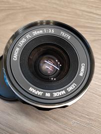Canon FL 28 f/3.5 in ottime condizioni, lenti, diaframma e ghiere perfetti.
