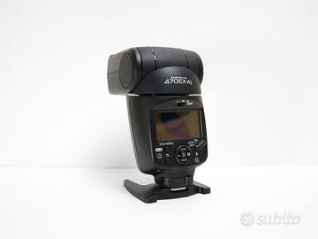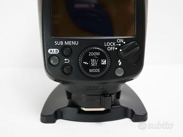 Flash Canon Speedlite 470EX AI. Il flash funziona correttamente nelle sue modalità ma il display posteriore non permette di vedere le impostazioni, in quanto presenta un difetto nei cristalli liquidi (vedi foto). Se si vuole usare il flash in Manuale, lo si può impostare nell’apposito menu della fotocamera Canon (DSLR o Mirrorless). Comprensivo di: Mini supporto con attacco, Diffusore bounce SBA-E4, Sacca morbida per il trasporto. Tutte le foto dell’annuncio sono scattate da me: il prodotto in vendita è quello che vedi in foto.