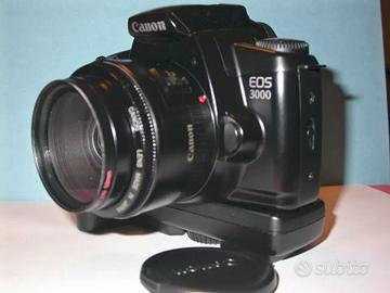 CANON: EOS 3000 + Obiettivo CANON 50/1,8 II + MOTORE CANON BP8 + Filtro SKYLIGHT - Manuale in Fotocopie. PERFETTA IN TUTTO.