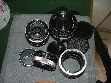 Vendo Canon FT QL anni 70 completa e funzionante, inclusa borsa, focali 28X e 200X, duplicatore di focale, custodie, libretto istruzioni ed accessori vari