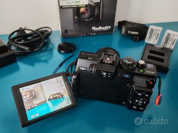 Fotocamera Canon G1X - MK1 in perfetto stato estetico e funzionale. Completa di: Pellicola protettiva sul display; Scatola originale e libretti; Carica batterie originale; Carica batterie di terze parti; 3 Batterie di cui una originale Canon e due di terze parti; Custodia/fodero in ecopelle Canon; Tracolla originale Canon. Possibile consegna a mano zona Lecce e provincia. Disponibile spedizione con tuttosubito.