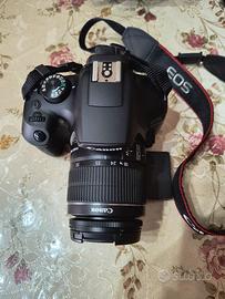 Usata una volta per un compleanno. Praticamente nuova. Vendo per inutilizzo. il kit comprende obiettivo 18-55 come in foto, includo SDHC Lexar Professional da 64 GB. Si connette tramite app per foto a distanza e salvataggi tutto direttamente dal cellulare.