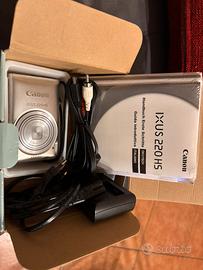 CANON IXUS 220 HS FOTOCAMERA DIGITALE 12.1 MP, SILVER. Usata solo per prova, libretto di istruzioni ancora sigillato. Perfetta, neanche un graffio. Incluso caricabatterie, batteria al litio,cavi usb.