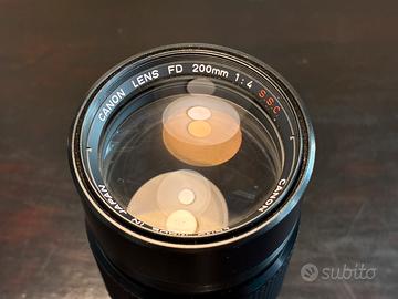 Obiettivo Canon FD 200mm 1:4 SSC L’obiettivo è in condizioni ottime all’esterno ma ha un alone di umidità all’interno della lente Per Canon FD Senza tappo