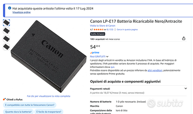 Canon LP-E17 Batteria originale acquistata a luglio 2024 Vendo per cambio macchina fotografica