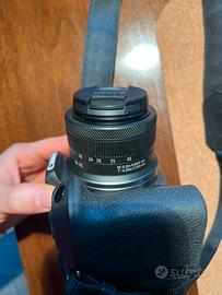 Scatola completa di: - corpo macchina EOS R10 - obiettivo RF-S 18-45 mm F4.5 - 6.3 IS STM KIT - carica batteria ordiniale canon - 1 batteria originale canon - libretto istruzioni - tracolla